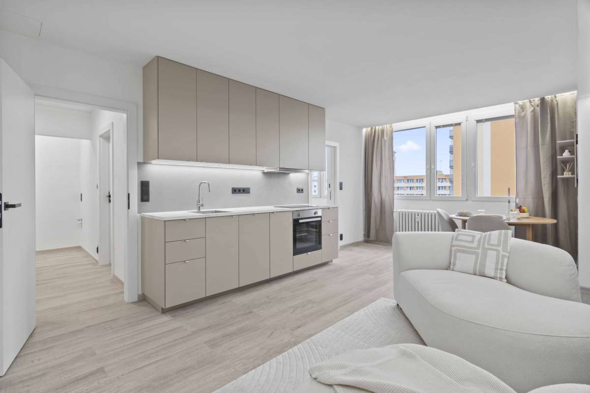 Z původního 1+1 s umakartovým jádrem jsme kompletní redispozicí navrhli a zrealizovali moderní 2+kk o velikosti 42 m², který je připravený buď k okamžitému bydlení, nebo jako bezstarostná investice k pronájmu.